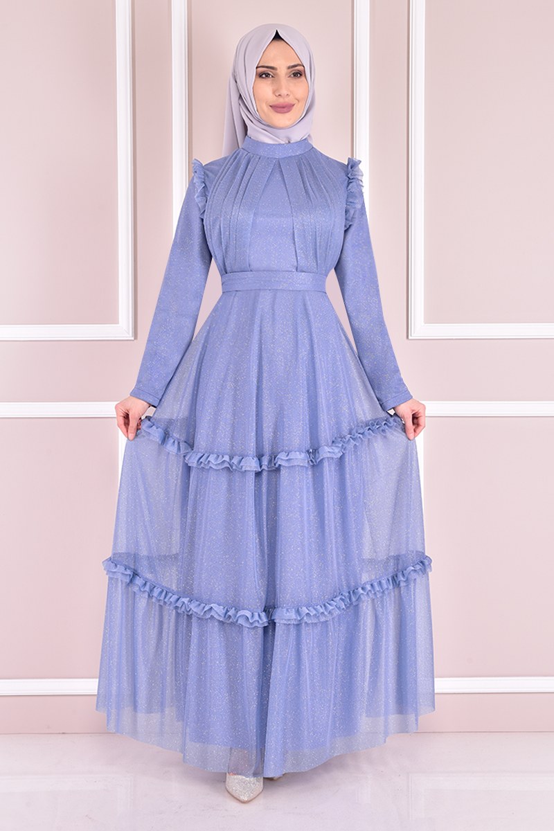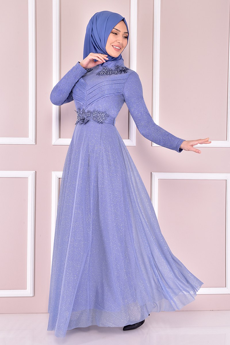 Tesetturlu Abiye Elbise Robe De Soiree Hijab Bleu Bebe 222bm Tesetturisland Com